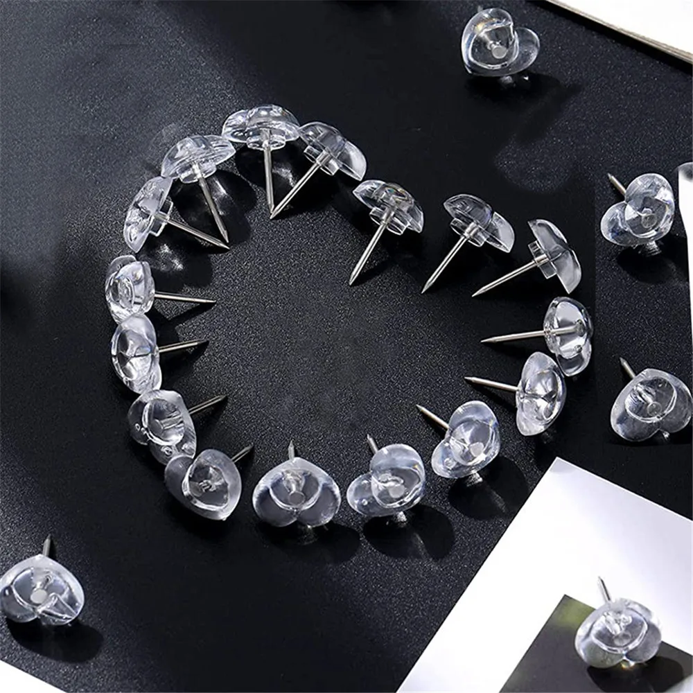 50pcs/100pcs box Heart Shape Markers Drawing Photo Wall Studs Cork Board Pins Transparent Push Pins Photo Thumb Maps Thumbtack